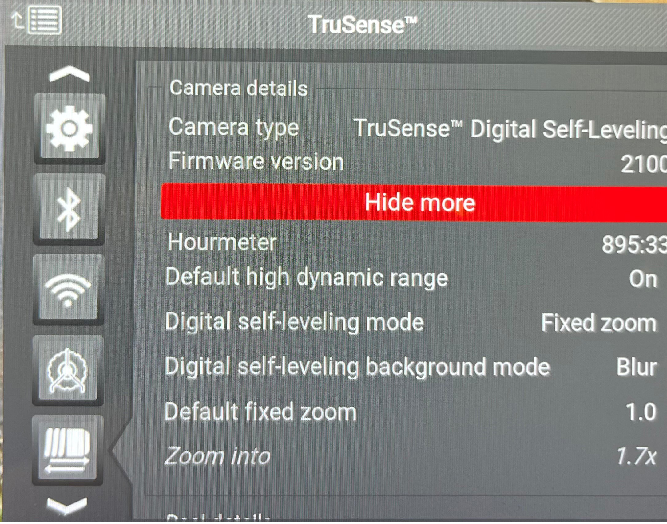 • Found under TrueSense → Show more → Hourmeter (monitor must run CSx software version 2.21.75 or later).
